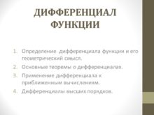 ДИФФЕРЕНЦИАЛ ФУНКЦИИ Определение дифференциала функции и его геометрический