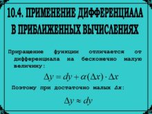 10.4. ПРИМЕНЕНИЕ ДИФФЕРЕНЦИАЛА В ПРИБЛИЖЕННЫХ ВЫЧИСЛЕНИЯХ Приращение функции
