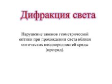 Дифракция света Нарушение законов геометрической оптики при прохождении