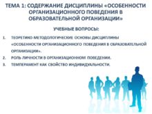 Тема 1: Содержание дисциплины «ОСОБЕННОСТИ Организационного поведения В