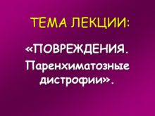 ТЕМА ЛЕКЦИИ: «ПОВРЕЖДЕНИЯ. Паренхиматозные дистрофии». Под термином «повреждение»