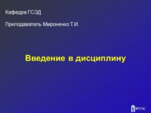 Введение в дисциплину Кафедра ГСЭД Преподаватель Мироненко Т.И.