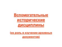 Вспомогательные исторические дисциплины (их роль в изучении архивных