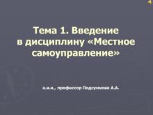 Тема 1. Введение в дисциплину «Местное самоуправление» к.и.н.,