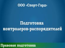 Подготовка контролеров-распорядителей Правовая подготовка ООО «Спорт-Гард» Правовая подготовка