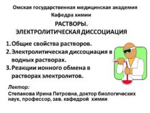РАСТВОРЫ. ЭЛЕКТРОЛИТИЧЕСКАЯ ДИССОЦИАЦИЯ Омская государственная медицинская академия Кафедра