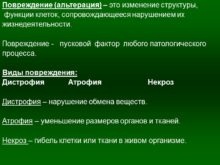 Повреждение (альтерация) – это изменение структуры, функции клеток,
