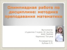 Олимпиадная работа по дисциплине: методика преподавания математики Выполнила: