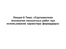 Лекция 6. Тема: «Сортиментная технология лесосечных работ при