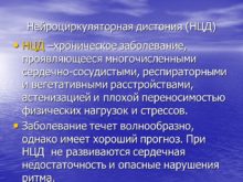 Нейроциркуляторная дистония (НЦД) НЦД –хроническое заболевание, проявляющееся многочисленными