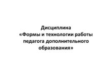 Дисциплина «Формы и технологии работы педагога дополнительного образования»