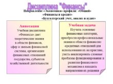 Направление «Экономика» профили: «Общий» «Финансы и кредит» «Бухгалтерский