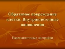 Обратимое повреждение клетки. Внутриклеточные накопления Паренхиматозные дистрофии Причины