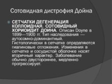 Сотовидная дистрофия Дойна СЕТЧАТКИ ДЕГЕНЕРАЦИЯ КОЛЛОИДНАЯ. СОТОВИДНЫЙ ХОРИОИДИТ