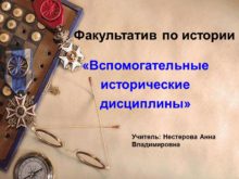 Факультатив по истории «Вспомогательные исторические дисциплины» Учитель: Нестерова
