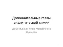 Дополнительные главы аналитической химии Доцент, к.х.н. Нина Михайловна