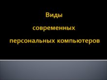 Виды современных персональных компьютеров Стационарные ПК Первый ПК,