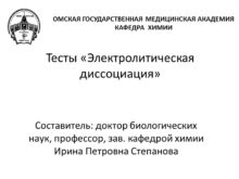 ОМСКАЯ ГОСУДАРСТВЕННАЯ МЕДИЦИНСКАЯ АКАДЕМИЯ КАФЕДРА ХИМИИ Тесты «Электролитическая