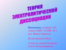 ТЕОРИЯ ЭЛЕКТРОЛИТИЧЕСКОЙ ДИССОЦИАЦИИ Выполнила: ученица 11б класса МОУ