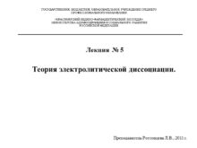 Лекция № 5 Теория электролитической диссоциации. ГОСУДАРСТВЕННОЕ БЮДЖЕТНОЕ