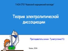 Теория электролитической диссоциации Преподаватель химии: Тухватуллина Р.З. ГАОУ