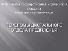 Переломы дистального отдела предплечья Кемеровская государственная медицинская академия