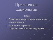 Прикладная социология План Понятие и виды социологического исследования