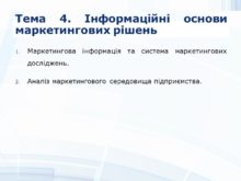Тема 4. Інформаційні основи маркетингових рішень Маркетингова інформація