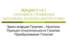ЛЕКЦИИ 3.1-4.1 ОСНОВНОЕ УРАВНЕНИЕ ДИНАМИКИ МАТЕРИАЛЬНОЙ ТОЧКИ Закон