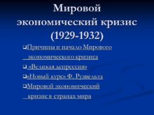 Мировой экономический кризис (1929-1932) Причины и начало Мирового