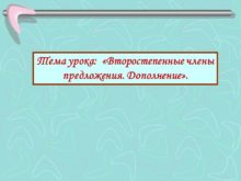 Тема урока: «Второстепенные члены предложения. Дополнение». Задание: Спишите.