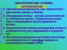 БИОЛОГИЧЕСКИЕ ОСНОВЫ ЗЕМЛЕДЕЛИЯ 1. Органическое вещество, как энергитичес-
