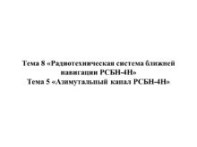 Тема 8 «Радиотехническая система ближней навигации РСБН-4Н» Тема