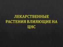 ЛЕКАРСТВЕННЫЕ РАСТЕНИЯ ВЛИЯЮЩИЕ НА ЦНС Растения, обладающие угнетающим