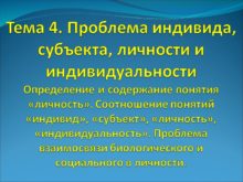 Тема 4. Проблема индивида, субъекта, личности и индивидуальности