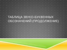 Таблица Звуко-буквенных обозначений (продолжение) Таблица звуко-буквенных обозначений (продолжение)