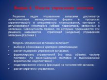 Вопрос 4. Модели управления запасами Решение задач управления