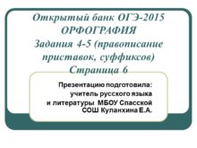 Открытый банк ОГЭ-2015 ОРФОГРАФИЯ Задания 4-5 (правописание приставок,