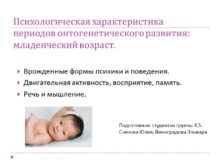 Психологическая характеристика периодов онтогенетического развития: младенческий возраст. Врожденные