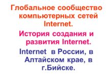 Глобальное сообщество компьютерных сетей Internet. История создания и