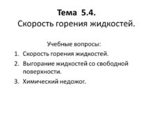 Тема 5.4. Скорость горения жидкостей. Учебные вопросы: Скорость