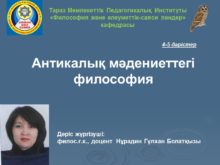4-5 дәрістер Антикалық мәдениеттегі философия Тараз Мемлекеттік Педагогикалық
