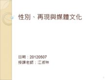 性別、再現與媒體文化 日期:20120507 授課老師:江淑琳 1 一、女性形象 刻板印象 (stereotype) 將人化約為一組誇大且通常是負面的性格