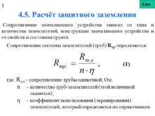 4.5. Расчёт защитного заземления Сопротивление заземляющего устройства зависит