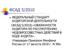ФСАД 5/2010 ФЕДЕРАЛЬНЫЙ СТАНДАРТ АУДИТОРСКОЙ ДЕЯТЕЛЬНОСТИ (ФСАД 5/2010)