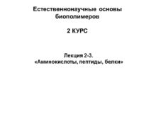 Естественнонаучные основы биополимеров 2 КУРС Лекция 2-3. «Аминокислоты,