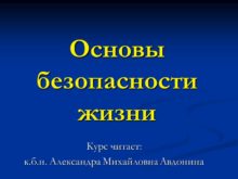 Основы безопасности жизни Курс читает: к.б.н. Александра Михайловна