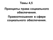 Темы 4,5 Принципы права социального обеспечения. Правоотношения в