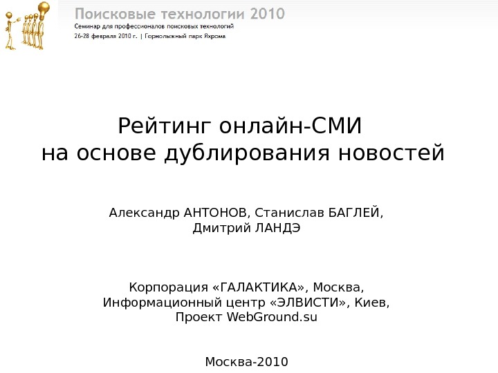 Рейтинг онлайн-СМИ на основе дублирования новостей Александр АНТОНОВ,