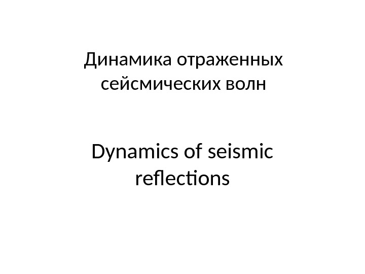 Динамика отраженных сейсмических волн Dynamics of seismic reflections